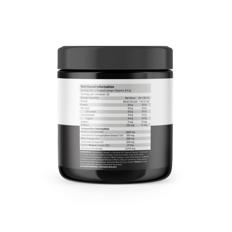 • 250mg of Caffeine for both energy & thermogenic support.