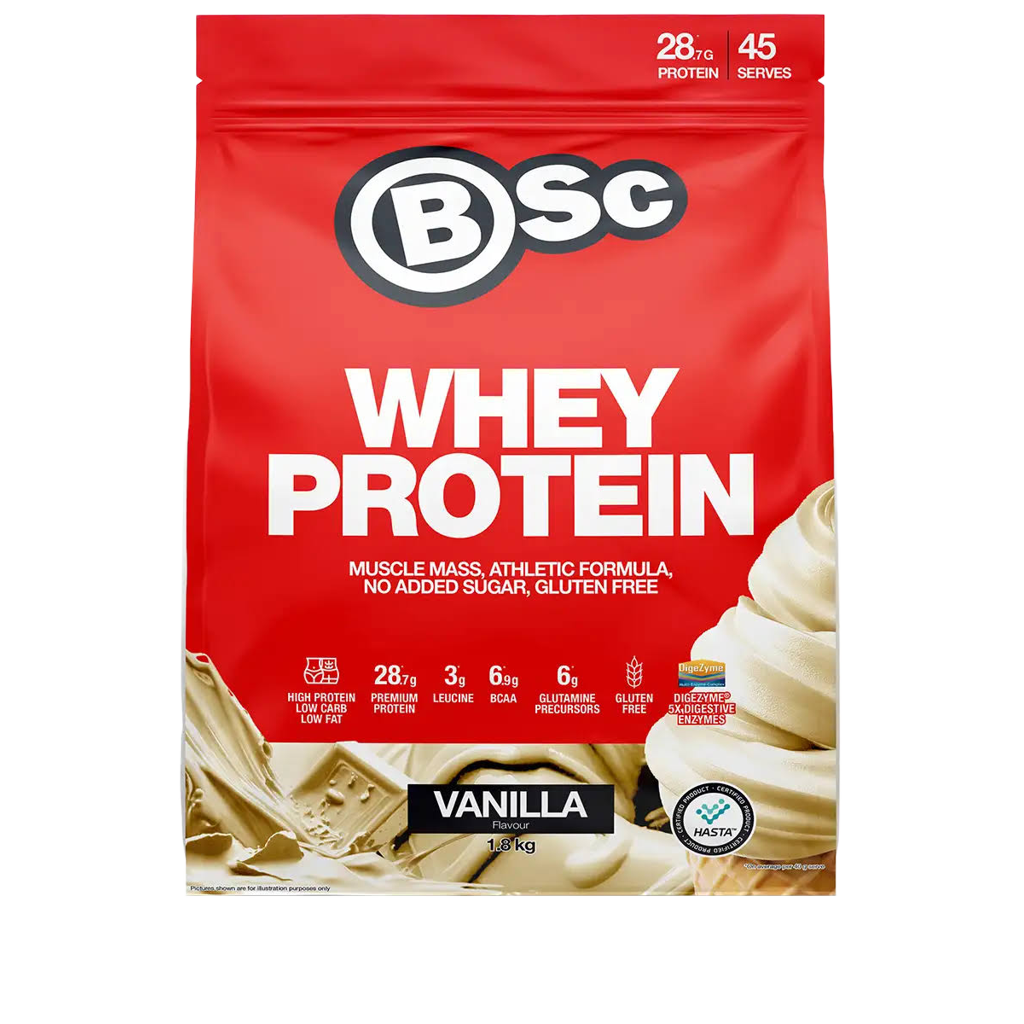 Fuel your fitness goals with BSc’s premium Whey Protein, expertly formulated with a blend of whey protein concentrate and isolate. Each 40g serving provides 28g of high-quality protein, supporting muscle growth, recovery, and enhanced performance. With only 2.3g of fat and 7g of carbs per serving, this lean protein powder is perfect for maintaining an active lifestyle while supporting a balanced diet.