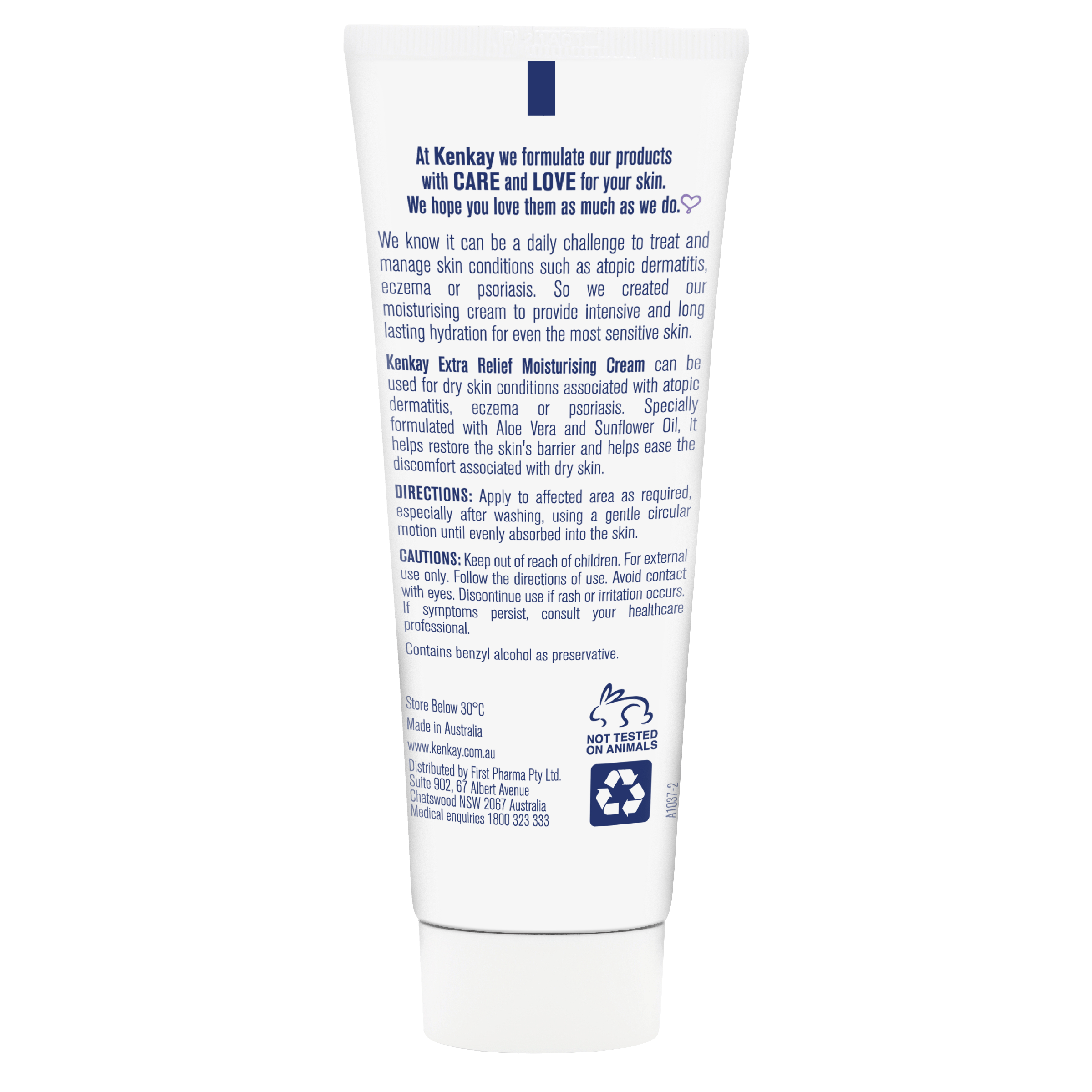 Kenkay Extra Relief Moisturising cream can be used for dry skin conditions associated with mild eczema and dermatitis. It’s a nourishing moisturiser for your whole body enriched with glycerol to protect skin and retain moisture, low irritant sunflower oil to calm skin irritation and aloe vera to soothe, giving you long-lasting hydration.