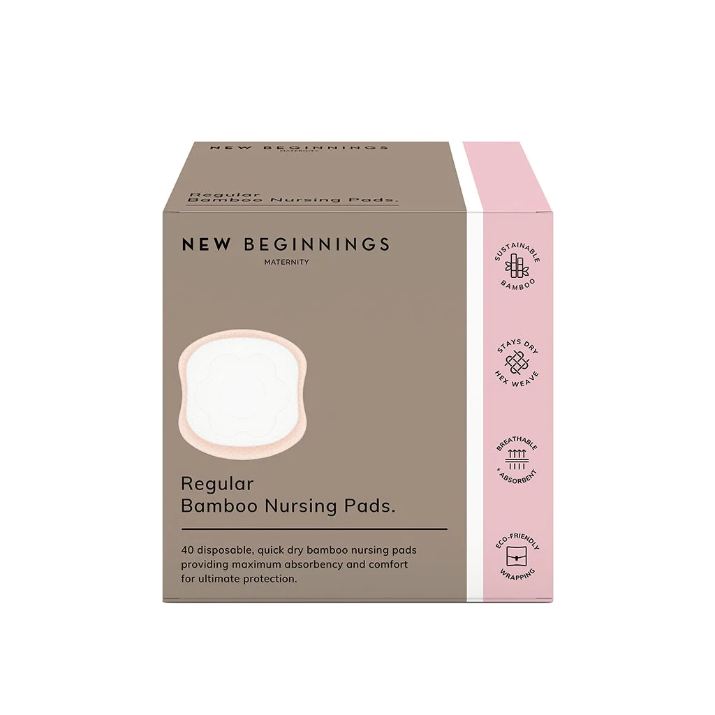 New Beginnings Regular Bamboo Nursing Pads 40 Pack Made from extra soft, natural bamboo lining and a highly absorbent core, the New Beginnings Nursing Pads are designed to channel and evenly disperse any leaked milk.