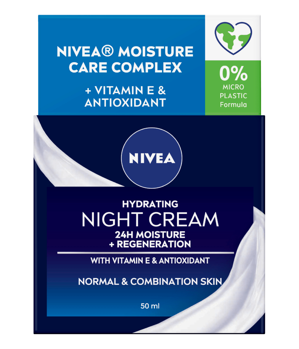 NIVEA Hydrating Night Cream for Normal and Combination Skin with Vitamin E and Anti-Oxidants enhances skin’s natural regeneration process at night, when your skin is the most receptive, so you can wake up to beautiful results. The light-weight formula boosts your skin with fast-absorbing moisture while helping protect your skin from oxidative stress and free radical formation the next day. Simply apply this cream to your cleansed face by gently massaging in, avoid direct eye contact. Suitable for normal and combination skin types, experience intensively nourished skin for 24 hours.