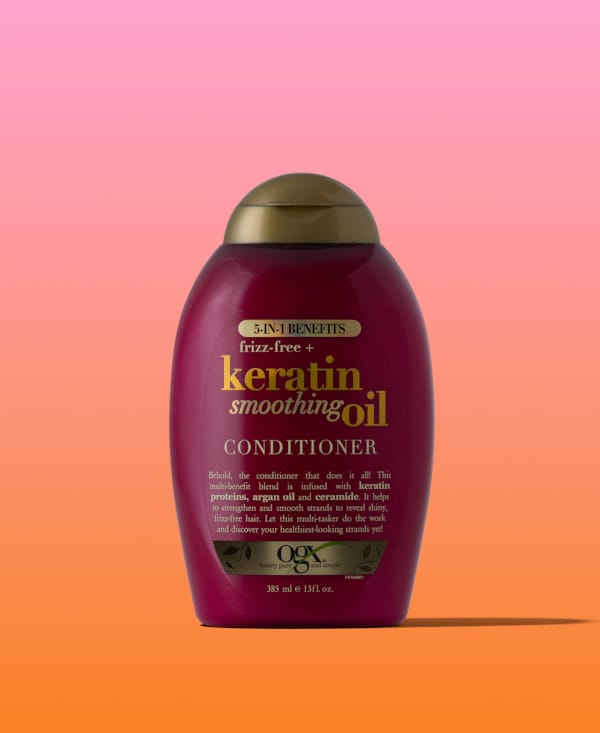 Make your showers count for more! OGX Frizz-Free + Keratin Smoothing Oil Conditioner is a true multitasker with the benefits of five products in one. It helps strengthen hair, improve flexibility, protect against humidity, keep hair frizz-free and reveal shiny hair—all in just one bottle. With hints of tropical orange, island pineapple and golden amber, it’ll make your strands smell as good as they feel. Use with OGX Frizz-Free + Keratin Smoothing Oil Shampoo for maximum results.