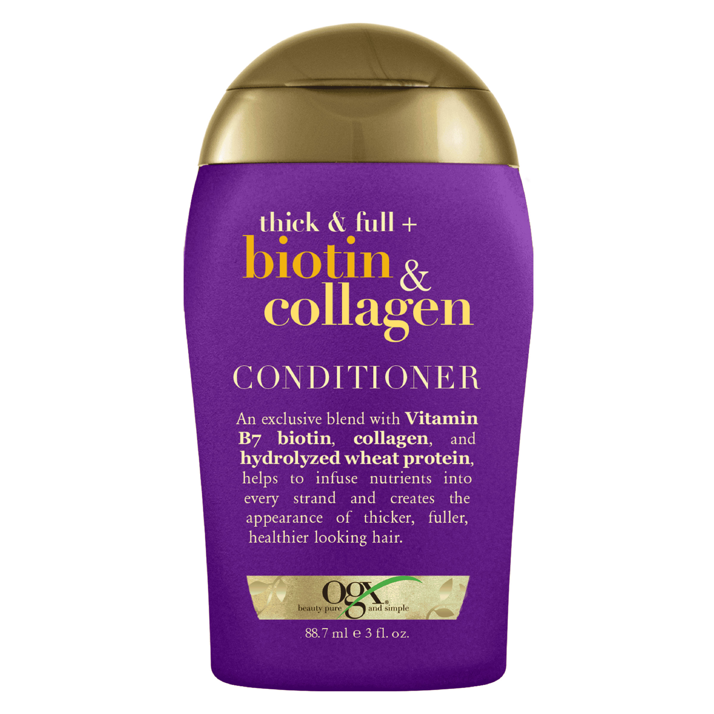 Plump up the volume in thin hair with the OGX Thick & Full + Biotin & Collagen Hair Volumizing Conditioner. Ideal for flat to medium volume hair, this thickening conditioner leaves hair feeling fuller & helps create more abundant-looking locks. The nutrient-rich, plump-it-up formula, is infused with vitamin B7 biotin, collagen, and wheat protein, and helps maintain growth for hair that’s healthy-looking and feels thicker. The luscious blend in also contains hydrolyzed wheat protein for hair that feels thicker & healthy-looking. Plus, the bergamot, jasmine & vanilla scent makes conditioning all-around sensory experience that leaves locks with an irresistibly good smell. Paraben-free with sulfate-free surfactants, this volumizing conditioner helps turn up the volume on your tresses & leave them feeling detangled. For best results, use this conditioner with the entire OGX Biotin & Collagen hair care collection to help infuse nutrients into every strand.