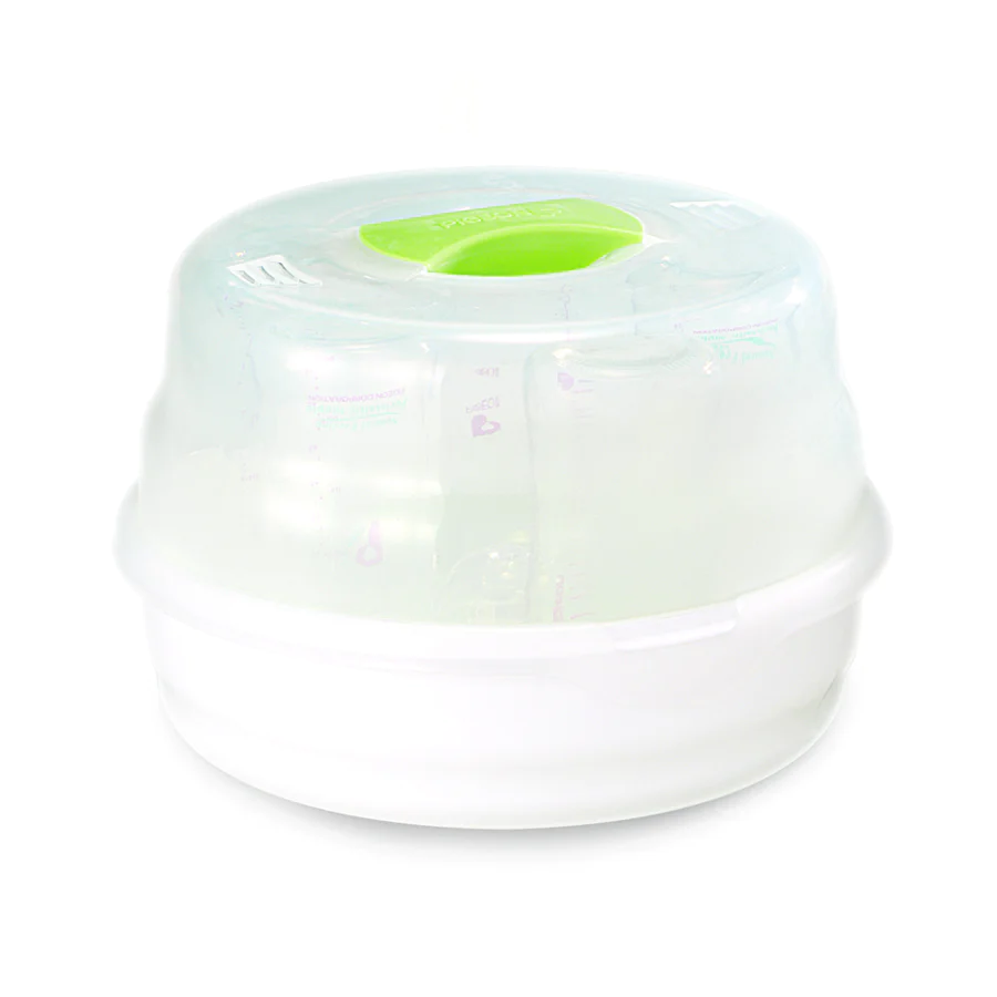 The Pigeon Microwave Steam Steriliser provides a simple and easy way to effectively sterilise your baby’s bottles, teats and accessories. It can fit most sizes of nursing bottles and accommodates up to 5 standard or wide neck Pigeon bottles.