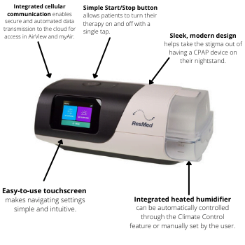 - Connects to ResMed’s myAir app for personalized support and insights.